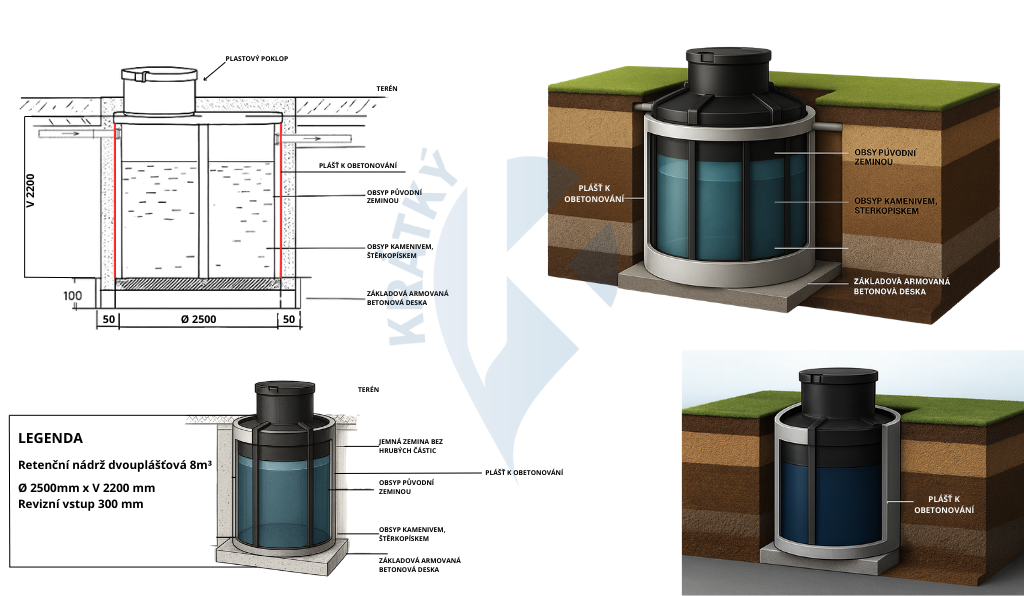 | Kategorie: | Retenční nádrže na dešťovou vodu dvouplášťové |