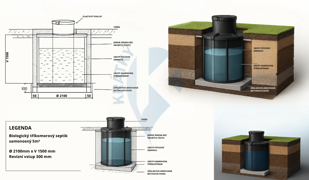 | Kategorie: | Biologický tříkomorový septik samonosný |